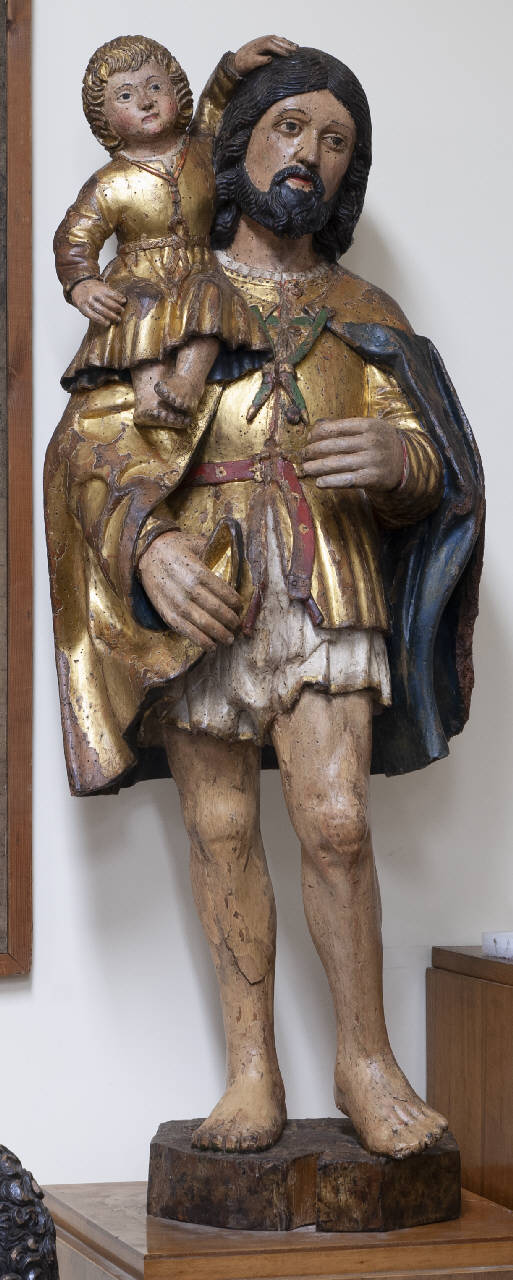 - NOTIZIE STORICO CRITICHE Non si hanno notizie precise relative alla provenienza di questo San Cristoforo entrato a far parte della collezione dell'Accademia Carrara nel 1924 per lascito testamentario di Carlo Ceresa (lasciò al museo trentuno opere della sua collezione, di cui ventotto dipinti). Nonostante la statua sia stata riferita alla produzione tarda di Pietro Bussolo, con largo intervento della bottega (Casciaro 2000, p. 55), è preferibile ricondurla alla mano di un più generico artista lombardo attivo nel secondo decennio del Cinquecento. Questo perché il confronto con il "San Cristoforo" conservato nella chiesa milanese con lo stesso titolo, attribuito con cautela all'attività giovanile del Bussolo (Casciaro 2005, p. 100), evidenza una diversità di esecuzione che non è possibile attribuire solo ad una distanza cronologica tra le due opere (M. Cristina Rodeschini 2016, pp. 140-143).