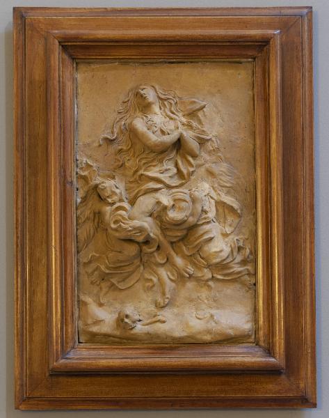 - NOTIZIE STORICO CRITICHE Il manufatto, che insieme ad altri rilievi conservati nella raccolta dell'Accademia Carrara fa parte della donazione Betty Ambiveri del 1962, è inserito in una cornice in legno di noce modanato. Per la sua intensità psicologica e per la fluenza e il ritmo del segno delle figure e dei panneggi è avvicinabile alla produzione della bottega fantoniana del 1710-1720 ca.