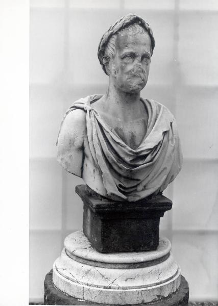 - NOTIZIE STORICO CRITICHE Questo busto in marmo, che raffigura l'imperatore d'Austria Francesco Giuseppe, fu acquistato nel 1856 dall'Accademia Carrara per commissione diretta dallo scultore Luigi Pagani, in quell'anno molto attivo a Bergamo. Difatti, oltre a realizzare il busto in Carrara, collaborò ai lavori di ripristino del Battistero della cattedrale di S. Maria Maggiore condotti dall'architetto Raffaele Dalpino eseguendo alcune statue di marmo bianco in sostituzione di quelle andate perdute ed espose presso l'Accademia Carrara il bassorilievo "Rosa mistica".
