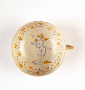 - NOTIZIE STORICO CRITICHE Provenienza non documentata.\nLe fonti contemporanee (Piccolpasso) parlano di questi prodotti di uso corrente "duginali", definiti tazzine o ciotolette o anche "tacce" o "scudellini dalle orecchie piccole" . La stessa foggia di coppetta era in uso a Faenza presso la bottega degli Utili.