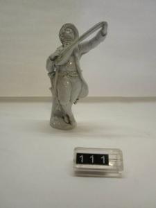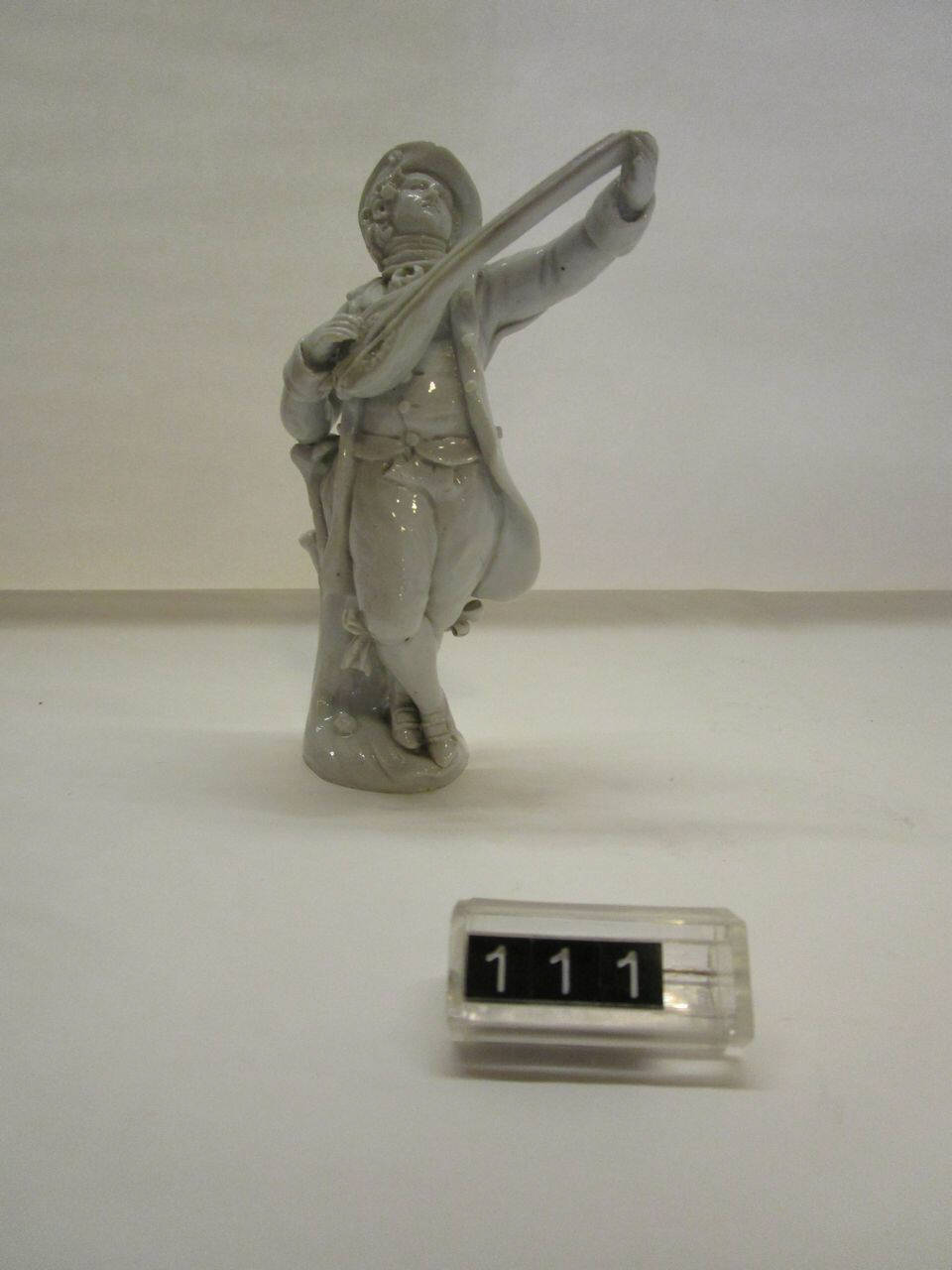 Figura a smalto bianco di giovane suonatore di mandolino, rappresentato in piedi appoggiato ad un tronco d'albero. Il medesimo soggetto ricorre in rappresentazioni in gruppi, bianchi o policromati.