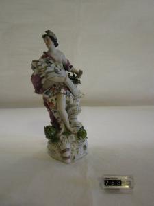 Figura su base rotonda ad ornati barocchi raffigurante l'allegoria dell'Estate. La donna è colta stante, col capo coronato si spighe e tiene tra le mani un fascio di spighe. Un drappo decorato con fiori le copre il basso ventre; la base è riccamente decorata con fiori, frutti e foglie. Fine decorazione policroma e tocchi oro. Datazione da collocare intono al 1760, non certa a causa della perdita di molti documenti della manifattura tra il 1749 e il 1763.