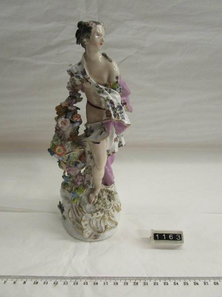 Figura, su base rotonda e a decorazione policroma e oro, raffigurante l'allegoria della Primavera. La donna è stante, parzialmente coperta da un drappo con stampa floreale, accanto a lei una sorta di troco ricoperto di fiori e vegetazione. L'opera manca di un braccio della donna.