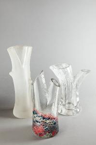 Vaso di vetro incolore a forma di frammento di tronco d'albero, suddiviso in due rami ognuno dei quali, tagliato nella parte superiore, termina con una apertura che costituisce una bocca del vaso. Nella parte inferiore presenta inclusioni in rame di colore rosso e nero.