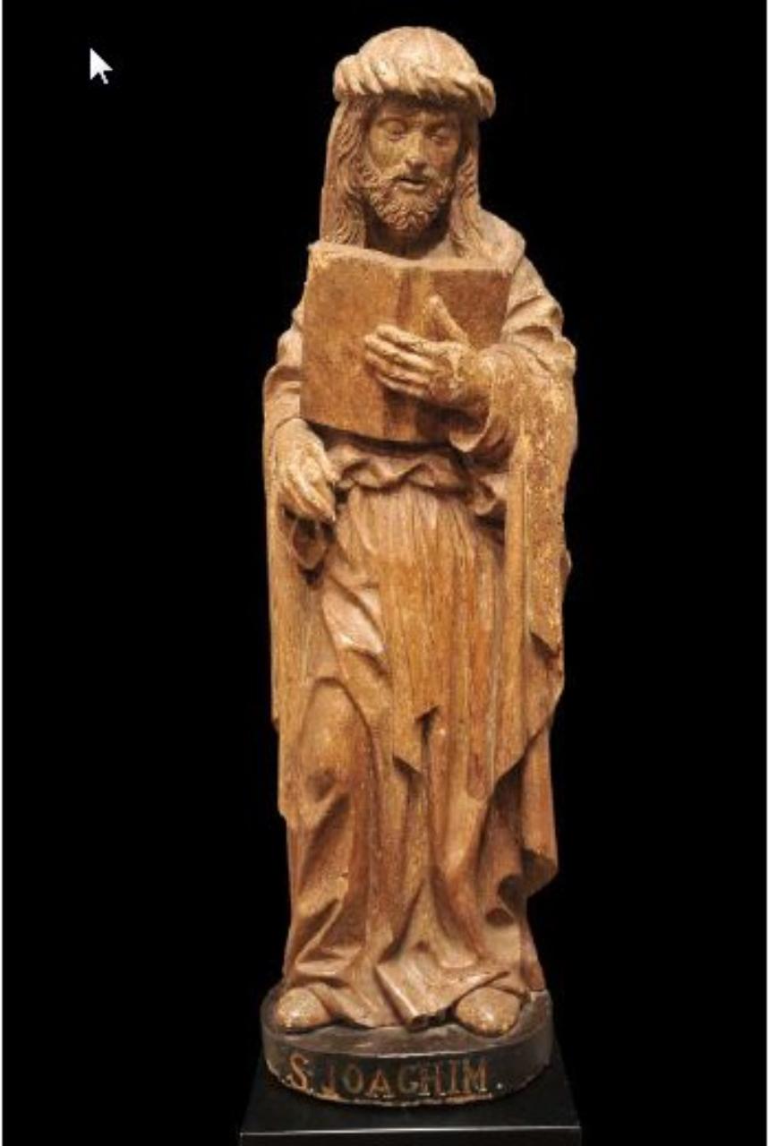 Scultura raffigurante San Gioacchino. Il santo è rappresentato a figura intera con il libro e turbante. Tracce policrome e di doratura. Scavata sul retro (inserita probabilmente nello scomparto di un'ancona).