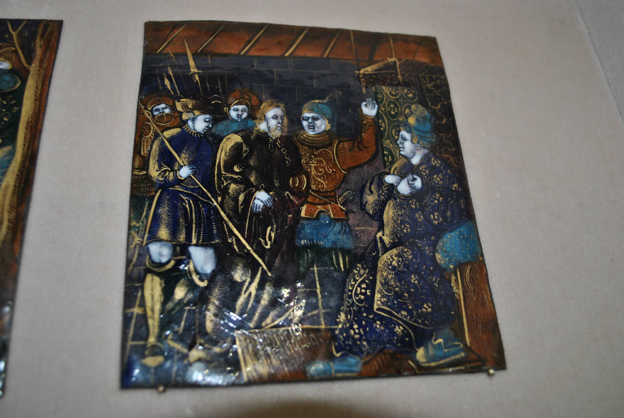 - NOTIZIE STORICO CRITICHE La placchetta in esame fa parte di una serie di dodici placchette con scene della Passione di Cristo. L'autore limosino si è ispirato alle xilografie della Passione di Albrecht Durer pbblicate tra il 1497 e il 1511. Sulla didascalia dell'opera è proposta, in modo dubitativo, l'attribuzione al Maestro del polittico di Mesnil-sous-Jumièges.