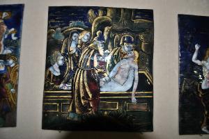 - NOTIZIE STORICO CRITICHE La placchetta in esame fa parte di una serie di dodici placchette con scene della Passione di Cristo. L'autore limosino si è ispirato alle xilografie della Passione di Albrecht Durer pbblicate tra il 1497 e il 1511. Sulla didascalia dell'opera è proposta, in modo dubitativo, l'attribuzione al Maestro del polittico di Mesnil-sous-Jumièges.