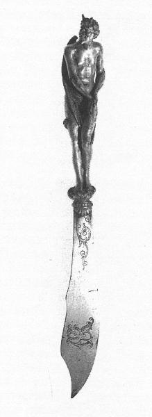 - NOTIZIE STORICO CRITICHE Il coltello in esame fa parte di una serie di undici coltelli appartenenti a un servizio da tavola eseguito nel 1887 ca. da Eugenio Bellosio per Giovanni Rizzi.