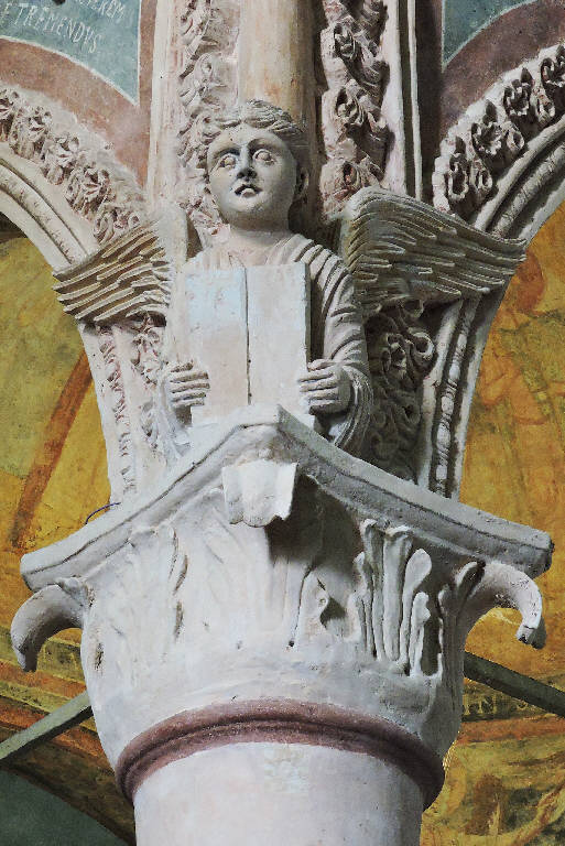 - NOTIZIE STORICO CRITICHE Una delle opere plastiche più rilevanti della chiesa di San Pietro al Monte è sicuramente il ciborio. Come per il resto delle decorazioni in stucco e degli affreschi dell'edificio anche per esso sono molte le opinioni sulla datazione che varia dalla seconda metà del XI secolo alla prima metà del secolo successivo. È in ogni modo un monumento rarissimo di cui si conosce un solo atro esempio che è quello nella basilica di Sant'Ambrogio a Milano. Alcune differenze però con quest'ultimo stanno nell'uso dei materiali, più ricchi nel ciborio milanese, e anche nelle dimensioni, inferiori in quello civatese che si contraddistingue per una maggiore snellezza.\nFunzione principale della struttura era quella di esaltare la zona dell'altare indirizzando lo sguardo del fedele verso la confessio dove erano custodite preziose reliquie di San Pietro. \nÈ stato sottolineato dalla critica come vi sia uno stretto legame iconologico fra le rappresentazioni in stucco del ciborio e gli affreschi della chiesa, benché oggi difficilmente coglibile per la perdita delle pitture dell'abside occidentale. Alla Crocifissione, ovvero alla morte di Cristo del timpano anteriore, corrispondeva infatti la Vittoria sul drago della lunetta di fronte, ossia il trionfo di Cristo risorto sul male; mentre alla Traditio legis et clavis, la missione affidata da Cristo alla chiesa del timpano posteriore, faceva da contraltare l'affresco perduto dell'abside occidentale che probabilmente rappresentava il Giudizio universale, cioè il ritorno sulla terra di Cristo alla fine dei tempi. Un'altra corrispondenza messa in evidenza fa riferimento alla visione del pellegrino che varcando l'ingresso dell'edificio incontrava come prima immagine la Traditio legis et clavis affrescata sopra la porta della chiesa e subito in asse, all'interno, la Crocifissione del ciborio. Viceversa dall'abside occidentale, probabilmente destinata al solo clero, un'altra Traditio legis et clavis - non visibile ai fedeli - era collocata in linea invece con la Vittoria sul drago. \nLe colonne del ciborio sono di granito rivestite d'intonaco, la struttura del fastigio è in muratura (sabbia, pietra e calce), mentre i capitelli, i simboli dei Quattro evangelisti, gli altorilievi con gli Episodi della vita di Cristo e tutte le decorazioni sono in stucco modellato, inciso, intagliato e in origine verosimilmente anche policromato. Secondo il parere di taluni studiosi i capitelli e le colonne sono però il risultato di rifacimenti successivi eseguiti con modalità e materiali diversi rispetto agli originari.