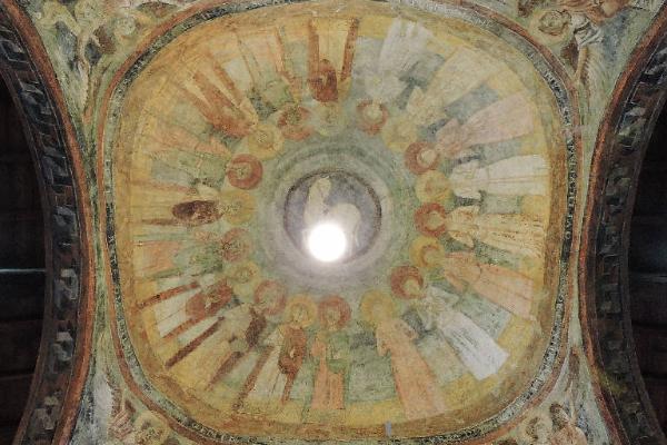 La cupola interna del ciborio della chiesa di San Pietro al Monte presenta una decorazione ad affresco dove sono rappresentati i Giusti attorno all'Agnello e nei pennacchi gli Angeli che trattengono i quattro venti della terra.