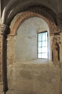 L'abside della cripta della chiesa di San Pietro al Monte presenta resti di una decorazione ad affresco raffigurante le Vergini sagge.