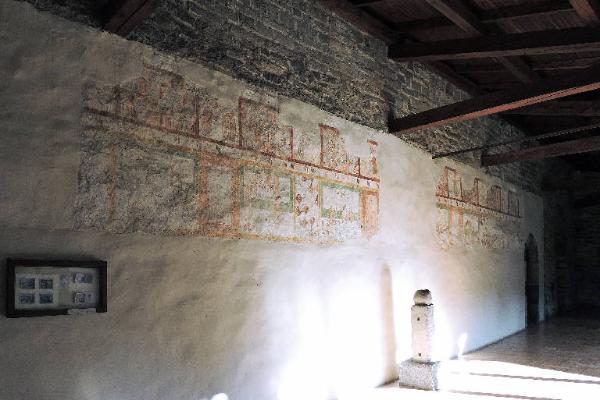 Sulla parete interna del lato nord del chiostro dell'Abbazia di Piona si conservano due ampie porzioni di una fascia decorativa divisa longitudinalmente in due registri scanditi da più riquadrature. Il registro superiore propone le Raffigurazioni dei mesi dell'anno alternate a rettangoli decorativi, mentre il registro inferiore propone Storie di Santi inframezzate da specchiature.