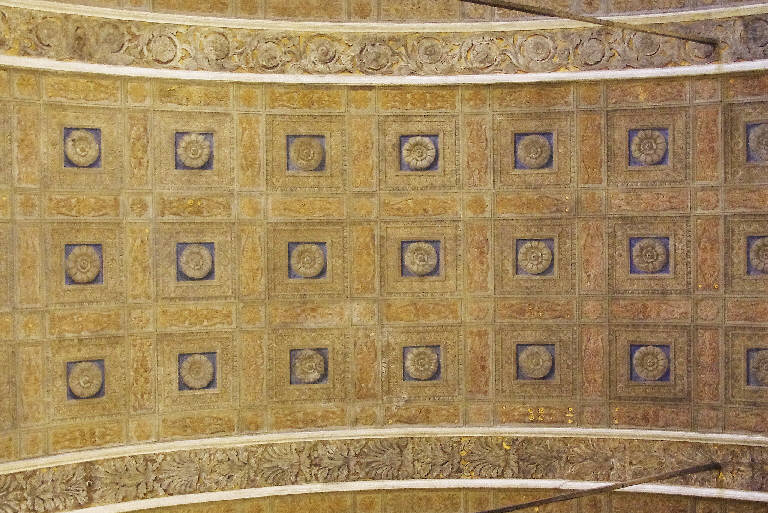 Le volte, sia della navata maggiore che dei transetti, della chiesa di Santa Maria presso San Satiro presentano una decorazione dipinta a finti lacunari ripartiti da fasce trasversali proponenti motivi floreali che delimitano le campate.\nLungo le lunette delle navate minori sono emersi, durante gli ultimi restauri, clipei affrescati. Inoltre sono stati recuperati anche i due tondi sovrastanti le porte nel transetto, ai lati del finto coro, raffiguranti l'Arcangelo Gabriele e la Vergine Annunciata.