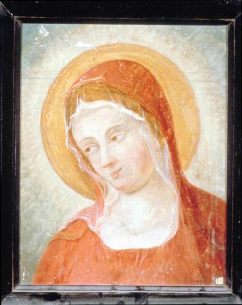 - NOTIZIE STORICO CRITICHE Come osserva l'estensore della scheda cartacea, l'affresco, "proveniente da qualche tabernacolo demolito o da qualche altra costruzione sacra scomparsa [...] è di modestissime qualità esecutive, dovuto probabilmente a un artista popolareggiante che lo ha eseguito fra Settecento e Ottocento, ricalcando stilemi trecenteschi".