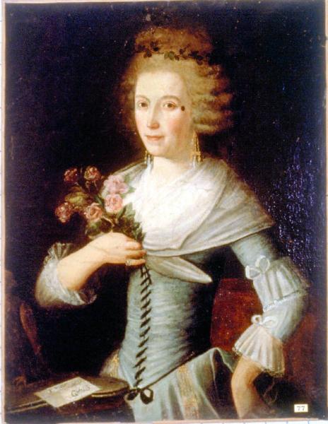 - NOTIZIE STORICO CRITICHE Il dipinto rappresenta una dama a mezzo busto in posizione quasi frontale, mentre tiene un mazzo di rose tra le mani. Data la somiglianza dei caratteri fisionomici con don Alessandro Olginati, rappresentato in una tela pure conservata nei Musei Civici di Como (inv. n. 237), non si esclude che la donna raffigurata appartenesse alla nobile famiglia Olginati e che, dunque, il dipinto esaminato facesse parte della collezione di famiglia lasciata nel 1931 ai Musei Civici di Como.