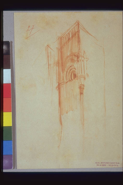 - NOTIZIE STORICO CRITICHE La torre presenta qualche analogia con quella tracciata nel lato destro del disegno inv. n. A 370.