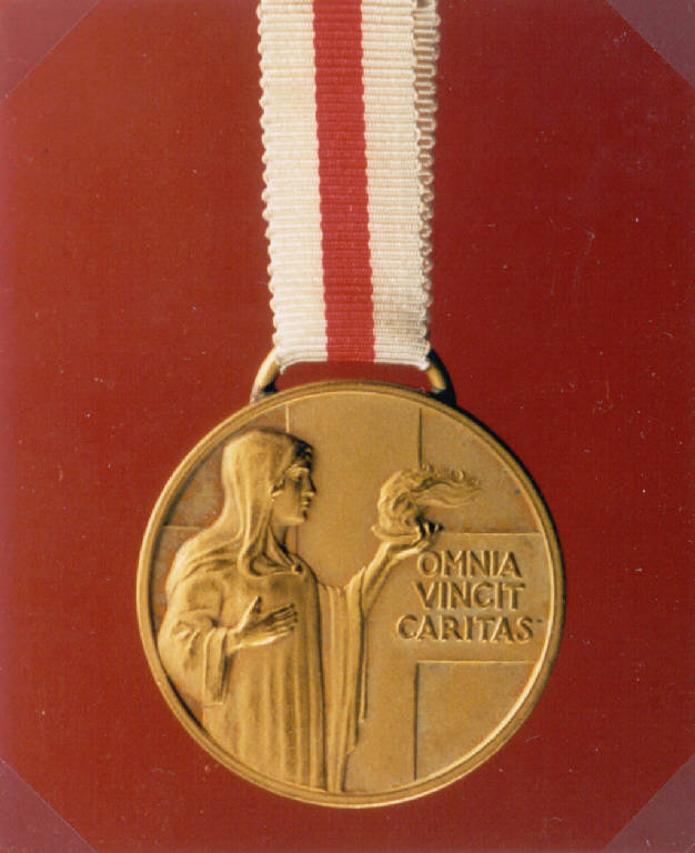 R: CROCE DI GINEVRA, ALLEGORIA DELLA CARITA'; V: CROCE DI GINEVRA, RAMI D'ALLORO. R: CROCE, FIGURA MULIEBRE CON IN MANO UN LUME ACCESO, ISCRIZIONE; V: CROCE, DUE RAMI D'ALLORO, ISCRIZIONE