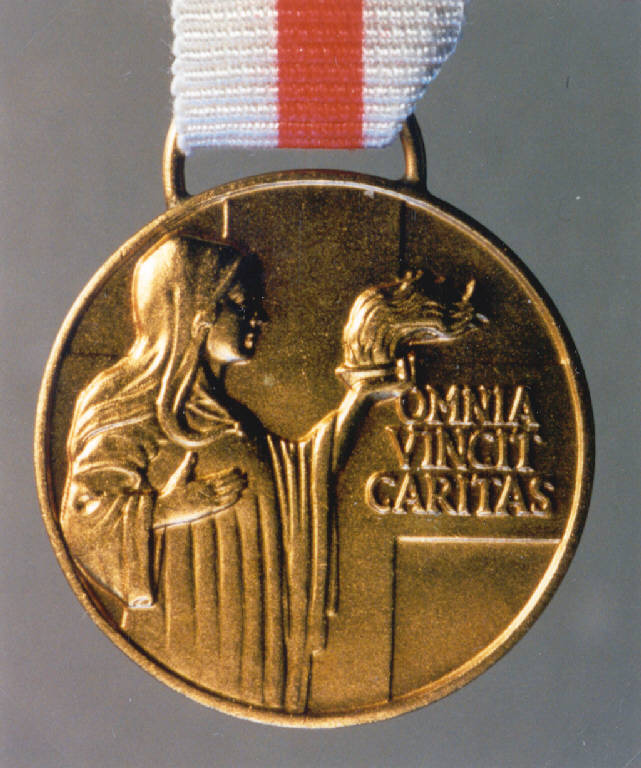 R: CROCE DI GINEVRA, ALLEGORIA DELLA CARITA; V: CROCE DI GINEVRA, RAMI D'ALLORO. R: CROCE, FIGURA MULIEBRE CON IN MANO UN LUME ACCESO, ISCRIZIONE; V: CROCE, DUE RAMI D'ALLORO, ISCRIZIONE