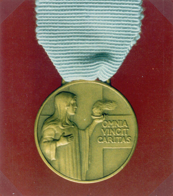 R: CROCE DI GINEVRA, ALLEGORIA DELLA CARITA; V: CROCE DI GINEVRA, RAMI D'ALLORO. R: CROCE, FIGURA MULIEBRE CON IN MANO UN LUME ACCESO, ISCRIZIONE; V: CROCE, DUE RAMI D'ALLORO, ISCRIZIONE