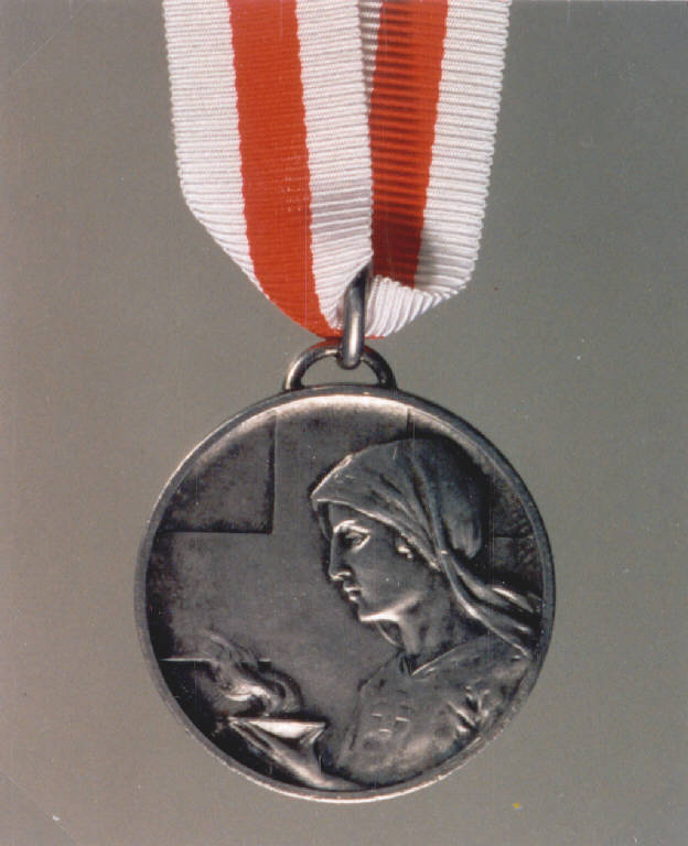 R: ALLEGORIA DELLA CARITA'; V: CROCE DI GINEVRA. R: FIGURA MULIEBRE A MEZZO BUSTO CHE REGGE UN LUME ACCESO, CROCE, ISCRIZIONE; V: CROCE, ISCRIZIONE