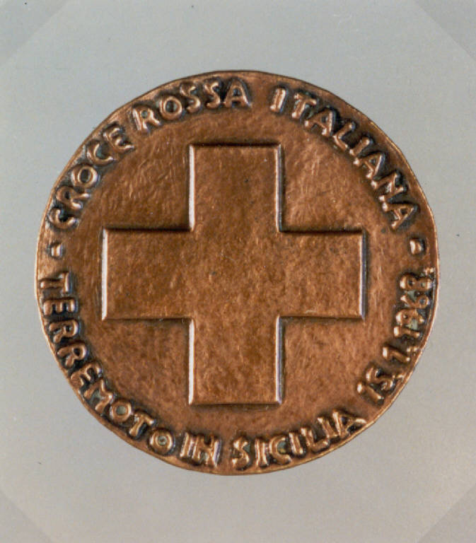 R: TOPOGRAFIA DELLE LOCALITA' TERREMOTATE; CROCE DI GINEVRA. R: TOPOGRAFIA CON LOCALITA' INCISE SU TARGHETTE, ISCRIZIONE; V: CROCE, ISCRIZIONE
