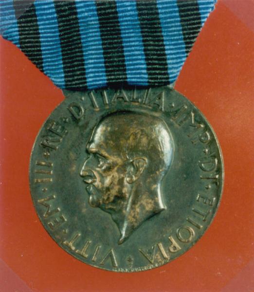 - NOTIZIE STORICO CRITICHE PERIODO STORICO: REGNO D'ITALIA\nDATA MERITO: 1935/1936\nEVENTO: PARTECIPAZIONE ALLE OPERAZIONI MILITARI IN AFRICA ORIENTALE\nNOME INSIGNITO: \nQUALIFICA: \nLUOGO EVENTO: \nLUOGO E DATA CONFERIMENTO: \nLA MEDAGLIA PREVEDEVA UN GLADIO ROMANO SUL NASTRO PER MILITARI E CIVILI INQUADRATI CHE PRESERO PARTE ALLA CAMPAGNA IN AFRICA ORIENTALE E SENZA GLADIO PER COLORO CHE CONTRIBUIRONO EFFICACEMENTE ALLA PREPARAZIONE E ALL'ORGANIZZAZIONE DELLE OPERAZIONI MILITARI. QUELLA IN OGGETTO E' SENZA GLADIO, MA LE E' ABBINATA UNA MEDAGLIETTA PIU' PICCOLA DESTINATA AGLI ABITI CIVILI