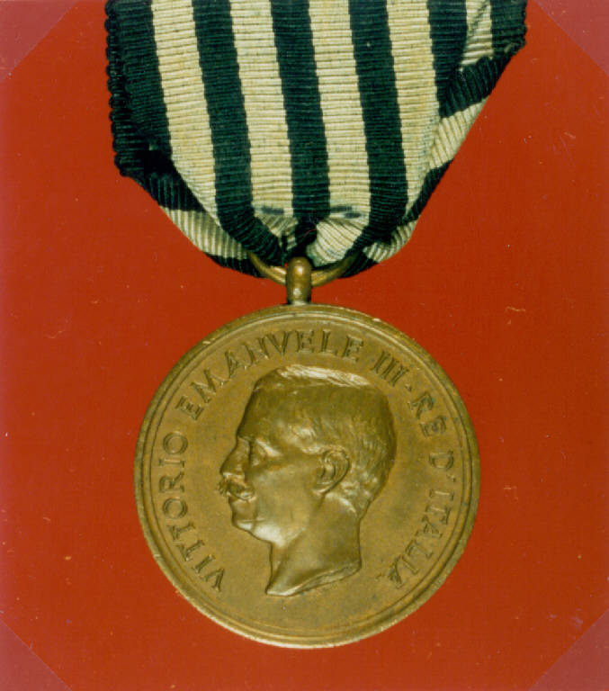 R: RITRATTO DI VITTORIO EMANUELE III,; V: SERPENTE DI ESCULAPIO, SIMBOLO DELLA SANITA'. R: EFFIGIE VIRILE PROFILO SINISTRO, ISCRIZIONE; V: CORONA DI QUERCIA, SERPENTE ATTORTO AD UN BASTONE, ISCRIZIONE