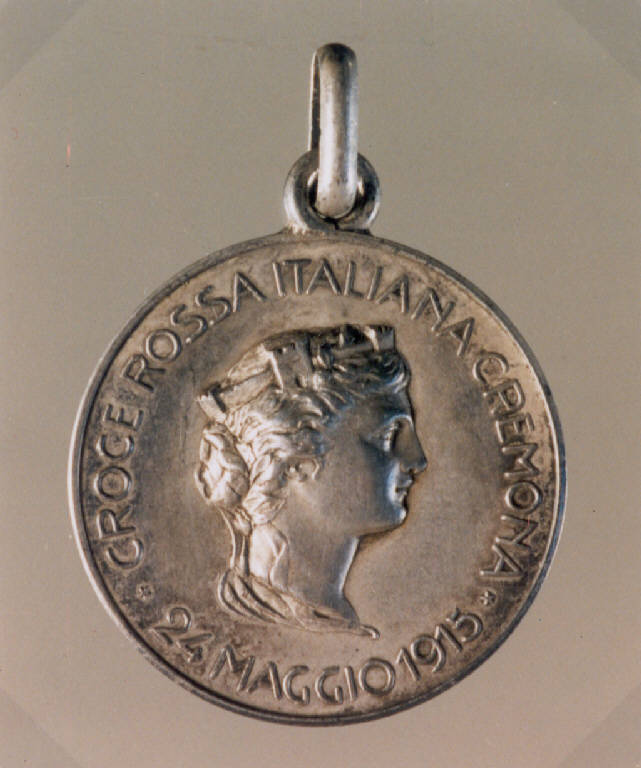 R: ALLEGORIA DELL'ITALIA; V: CROCE DI GINEVRA. R: TESTA FEMMINILE TURRITA, PROFILO DESTRO, ISCRIZIONE; V: CROCE ROSSA INSCRITTA IN UN CERCHIO, CARTIGLIO, RAMO DI QUERCIA E DI ALLORO, ISCRIZIONE