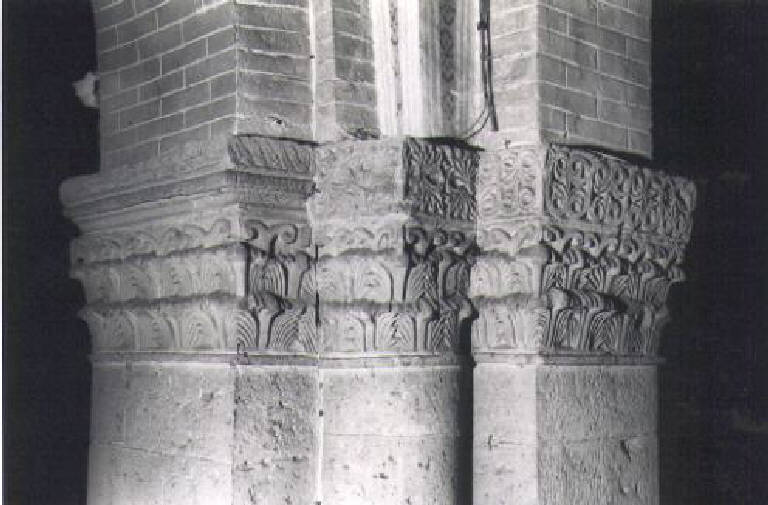 Motivi decorativi vegetali stilizzati (semicapitello corinzio) - ambito pavese (prima metà sec. XII)