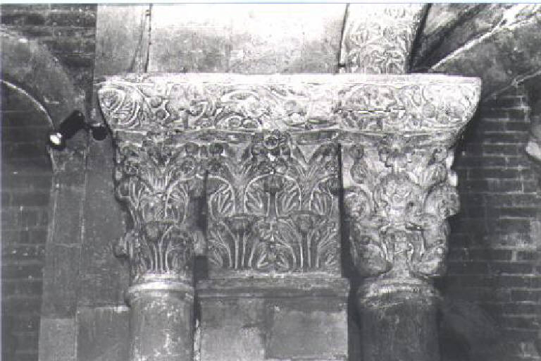 Motivi decorativi vegetali stilizzati (semicapitello corinzio) - ambito pavese (prima metà sec. XII)