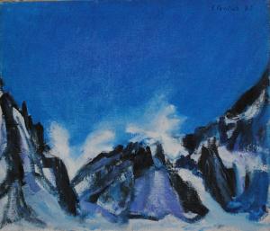 Il soggetto rappresenta delle cime montuose, che si stagliano sull'azzurro del cielo. I colori prevalenti sono il bianco, l'azzurro e il nero. Probabilmente l'opera fa parte della serie delle "montagne".
