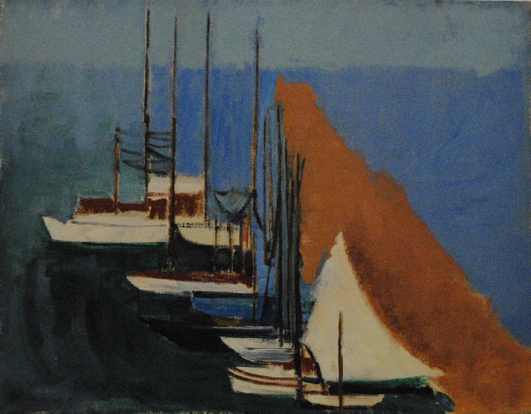 L'opera raffigura un molo dove sono attraccate alcune imbarcazioni.