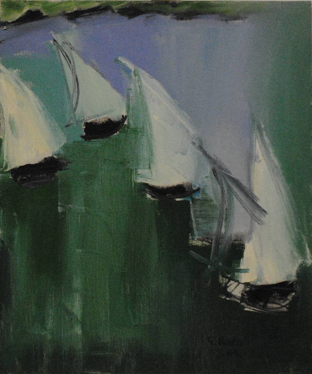 L'opera, alla maniera delle soluzioni pittoriche di Nicolas de Staël, raffigura quattro imbarcazioni a vela su un mare verde acqua.