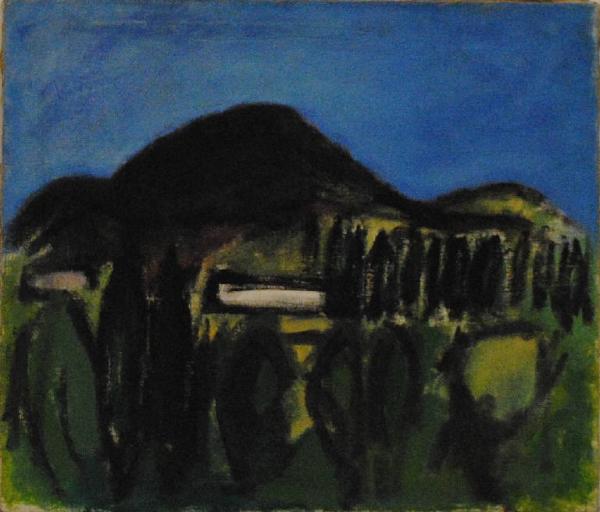 L'opera raffigura in maniera stilizzata uno scorcio di paesaggio collinare.