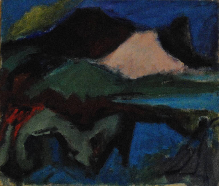 L'opera raffigura un paesaggio montano stilizzato ispirato, come si legge dalla nota manoscritta, ad un'opera di Tiziano.