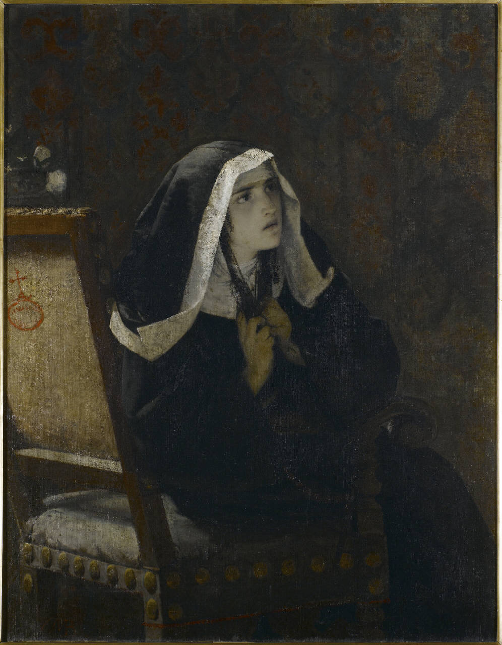 - NOTIZIE STORICO CRITICHE Esposto a Brera nel 1865, venne assegnata al Comune di Milano dalla Società per le Belle Arti. Il dipinto fu riprodotto nel 1896 in un'acquaforte ed un ulteriore versione, esposta alla Società Promotrice di Torino nel 1867 e forse anche a Brera nel 1872, compare nelle collezioni della Galleria d'Arte Moderna di Torino. Un altro dipinto con medesimo soggetto, con la Monaca di Monza che si confessa al cardinal Federico, è nella Pinacoteca civica di Verona.