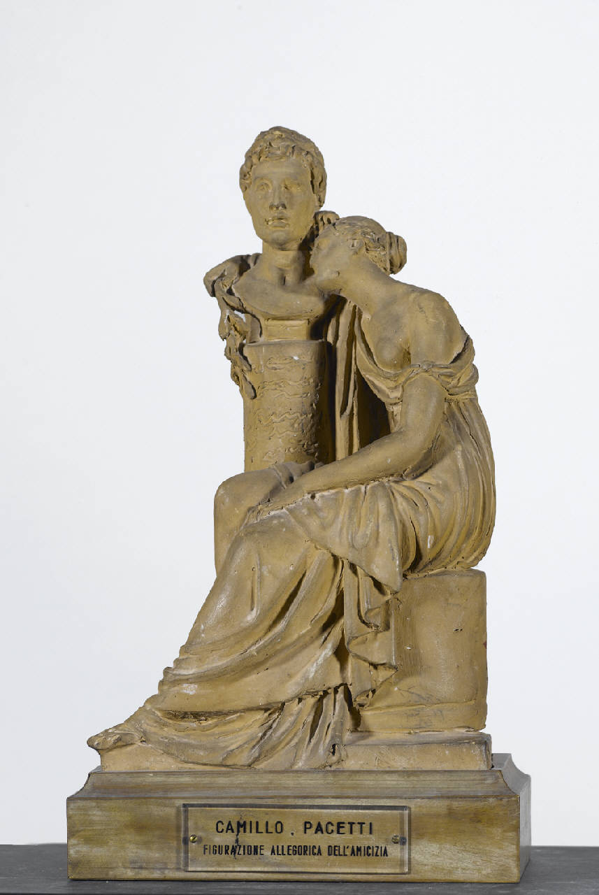 - NOTIZIE STORICO CRITICHE Questo bozzetto era stato donato all'Accademia dalle sorelle Gaetanina eFelicita Cacciatori (Benedetto Cacciatori aveva sposato la figlia del Pacetti). L'opera in esame è intitolata anche "Progetto per un monumento funerario".