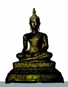 Buddha seduto sul trono di loto, nel gesto della testimonianza. Statua raffigurante Buddha seduto sul trono di loto, nel gesto della testimonianza