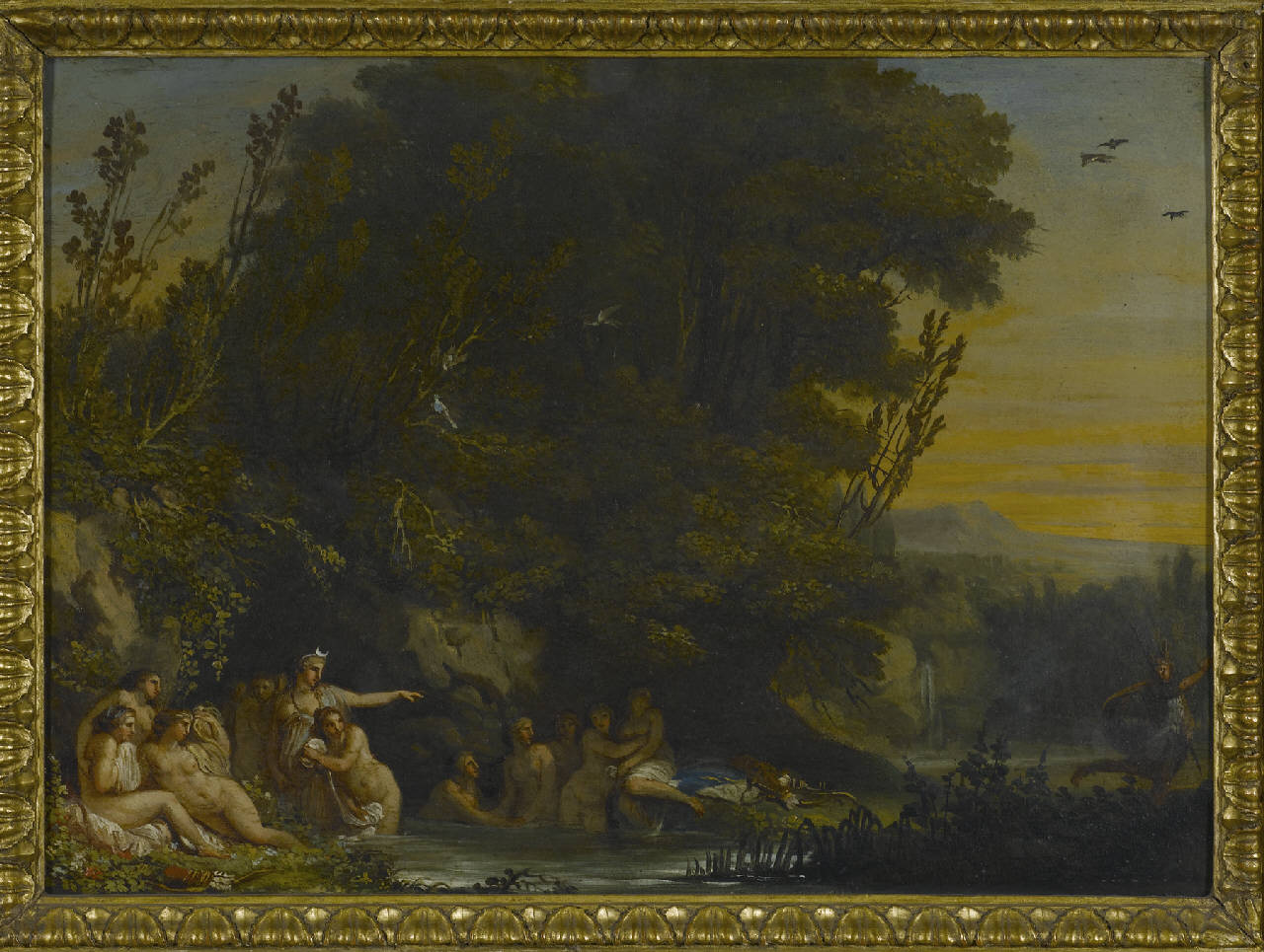 - NOTIZIE STORICO CRITICHE La piccola tavoletta, testimonia l'interesse di Appiani per la pittura di paesaggio. Seguendo la strada già percorsa dai Carracci, Lorrain, Albani e Domenichino, l'artista realiza due scene dal sapore colto, letterario, basandosi però sulla ripresa dal vero del paesaggio. Secondo la testimonianza del Beretta, biografo dell'artista, la tavola - insieme a "Marte e Venere" - corrisponderebbe a quella realizzata per casa Ferrero a Torino, e quinid databile intorno al 1801. Michele Bisi, riporta inoltre che il paesaggio spetterebbe ad un paesaggista anonimo mentre le figure sono di opera dell'Appiani.