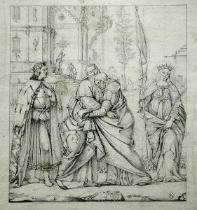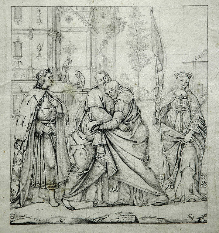 - NOTIZIE STORICO CRITICHE La data proposta tiene conto dell'iscrizione di Luigi Zandomeneghi (1778-1850), scultore attivo soprattutto e Venezia nella prima metà dell'800, padre di Pietro, scultore, e nonno di Federico. Luigi Z. sarebbe autore non del disegno ma del giudizio riportato nell'iscrizione. Lo stile del disegno mostra una marcata attenzione per i volumi delle figure e per la solidità del panneggio e permette di ipotizzare che sia stato eseguito da un giovane scultore allievo di Zandomeneghi.