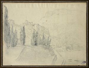 - NOTIZIE STORICO CRITICHE Il disegno, più rifinito rispetto al precedente (n. inv. 4802) per dimensioni, tipo di carta e per il soggetto doveva fare parte dello stesso album di disegni con n. inv. 4802 e 4803, eseguiti dal pittore durante uno dei suoi numerosissimi viaggi attraverso l'Europa, compiuti dal 1843, quando venne in Italia da Odessa, fino al 180 circa1. Il paesaggio montuoso, con il lago, di questo disegno fano pensare a una località svizzera. Un album di disegni di questo formato è stato acquistato da Riccardo Lampugnani ed è pervenuto al Podi Pezzoli (n. inv. 5236). In Italia le opere di Bossoli erano ricercate fino ai primi anni sessanta soprattutto per i soggetti storico-militari (le guerre d'indipendenza); due gallerie milanesi (Geri e Cocorocchia) esposero suoi dipintie disegni nel 1966 (Catalogo Bolaffi della pittura italiana dell'800, 1964 e 1969). Più tardi sono i paesaggi e le vedute ad attrarre i collezionisti, ed hanno un mercato anche gli appunti di taccuino (Catalogo Bolaffi della pittura..., 1978) come quello qui esaminato e l'album acquistato probabilmente negli anni settanta da Riccardo Lampugnani. I disegni dei taccuini di viaggio rappresentano l'aspetto più moderno e meno convenzionale della produzione di Bossoli.\nUna foto in bn è conservata nell'album "D 6 1800-1900".
