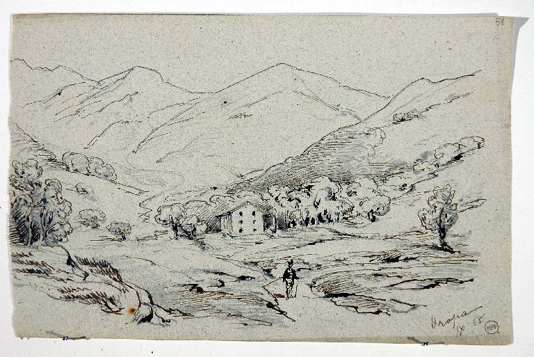 - NOTIZIE STORICO CRITICHE Il foglio non fa parte fisicamente del taccuino ma è stato considerato parte di esso o da Riccardo Lampugnani o dal responsabile dell'inventarizione del Museo Poldi Pezzoli, come si desume dal numero apposto a matita in alto a destra, che indica la continuità numerica con le pagine del taccuino. La data scritta da Bossoli, così come lo stile del disegno, indicano un'escuzione posteriore di venti anni rispetto ai disegni del taccuino.