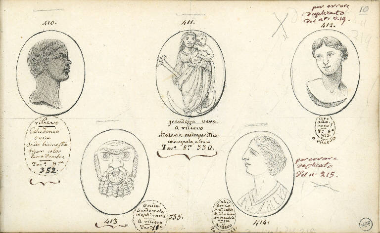 - NOTIZIE STORICO CRITICHE Le gemme riprodotte in questa pagina, come indicano le relative iscrizioni, sono a rilievo e quindi si tratta di cammei.
