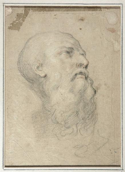 - NOTIZIE STORICO CRITICHE Una foto del disegno è conservata nell'album Lampugnani D.14. Una nota a pastello, posta sul passepartout, riferisce a Guido Reni questa bella testa di vecchio, di morbida fattura, ma l'attribuzione non è, a mio avviso, da confermare: certamente reniana è la cultura di riferimento dell'anonimo autore del foglio di collezione Lampugnani; ma il modellato finissimo, il delicato gusto pittorico, e il tratteggio a linee brevi, molto sfumate, fanno pensare ad una datazione più avanzata, verso la seconda metà del XVII secolo. A mio avviso, il disegno potrebbe trovare esatta collocazione nella cultura neoreniana della Bologna di fine Seicento: e in particolare mi sembra suggestivo, anche se non del tutto convincente, l'accostamento con alcuni fogli di Giovan Gioseffo Dal Sole (Bologna 1654-1719; si veda ad esempio lo "Studio di nudo" della Pinacoteca di Brera, a carboncino, pietra nera sanguigna e gessetto bianco, cat. n° 42, pp. 146-147 in "Disegni emiliani dei secoli XVII-XVIII della Pinacoteca di Brera", Milano 1995).