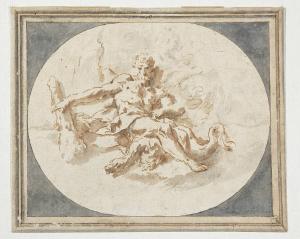 - NOTIZIE STORICO CRITICHE Una scritta in grafia antica posta sul recto del disegno, in basso a destra, assegna il foglio a Bernardino Galliari. L'attribuzione è senz'altro da confermare, anche se è assai difficile il confronto con i disegni noti di Bernardino, in massima parte preparatori per scenografie ed eseguiti, per lo più, in collaborazione con il fratello Fabrizio; sembra assai simile, però, il tratto leggero e frammentato, sensibile all'influenza di Giambattista Tiepolo e di Giovanni Battista Crosato; e le figurette allungate, nervose, sono di un tipo che Bernardino ripete spesso; si veda, ad esempio, il bozzetto con le "Nozze di Bacco", preparatorio per il sipario del Teatro Regio di Torino (1756), ora conservato presso la Galleria Sabauda (R. Bossaglia "I fratelli Galliari pittori", Milano 1962).