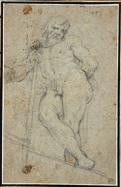 - NOTIZIE STORICO CRITICHE Una foto del disegno è conservata nell'album Lampugnani D.14. Il foglio non reca alcuna attribuzione: ma a mio avviso, per il segno di contorno fluido e sciolto, che delinea con precisione la muscolatura possente del dio, per i pochi tratti densi di matita che servono a delineare il volto, per l'abile veduta di scorcio, potrebbe essere assegnato ad un artista bolognese attivo nella prima metà del Settecento e vicino, forse, alla cerchia neo carraccesca a cui appartiene, ad esempio, Aureliano Milani (Bologna 1675-1749).