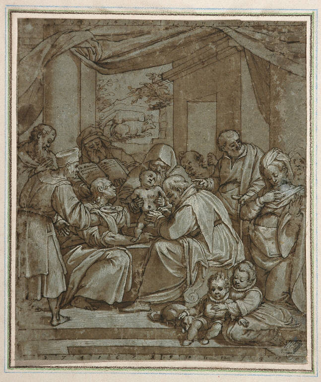 - NOTIZIE STORICO CRITICHE Una foto del disegno è conservata nell'album Lampugnani D.1 (negativo 23299 Perotti): all'immagine è allegato un biglietto datato 16/ 2/ 1977 scritto da Julien Stock di Sotheby's Londra per comunicare a Riccardo Lampugnani l'esito negativo delle sue ricerche e per confermare l'attribuzione del foglio a Denis Calvaer, evidentemente avanzata in precedenza. Un'altra foto del disegno è conservata nell'album D.14. Sui cartoncini di supporto, Riccardo Lampugnani ha poi annotato altri nomi di artisti: Santi di Tito e Gaudenzio Ferrari, per confronto con un suo foglio conservato presso la Biblioteca Ambrosiana. L'ipotesi di attribuzione all'ambito di Denis Calvaert resta comunque, a mio avviso, la più probabile.