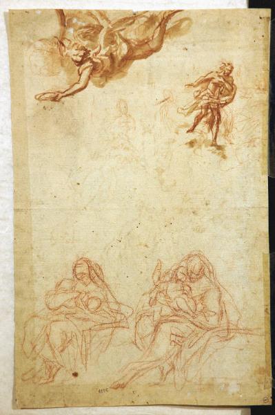 - NOTIZIE STORICO CRITICHE Una foto del disegno, al recto e al verso, è conservata nell'album Lampugnani D.5. Il foglio non reca alcuna attribuzione: a mio avviso, può essere accostato ad alcuni disegni attribuiti al napoletano Paolo de Matteis, la "Adorazione", ad esempio, a penna, inchiostro e acquerello conservata nella collezione Franchi di Bologna (cfr. cat. 75, pp. 156-157 in "...di bella mano. Disegni antichi della raccolta Franchi", Bologna, 1998), in cui compare una identica figura di angelo che regge in mano un turibolo; o il "Cristo in gloria" a matita, penna e inchiostro della collezione Ferrara Dentice, dal volto assai simile al pastore posto sulla estrema destra, in secondo piano, nella "Adorazione" Lampugnani (cfr. cat. 46, pp. 60-61, in "I disegni del cinquecento e del seicento. La collezione Ferrara Dentice", a cura di M. Causa Picone, Napoli 1999). Il verso del foglio reca alcuni studi a sanguigna e pennello rosso per un angelo, per una Madonna col Bambino, per figure maschili, da riferire con certezza alla stessa mano.