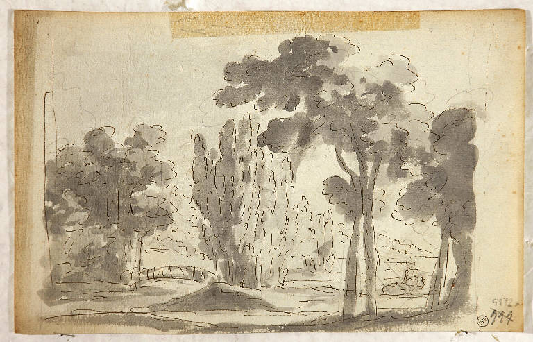 Scena raffigurante un bosco con un ponticello. PAESAGGIO