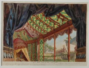 Scena per "Attila" raffigurante la tenda di Attila. PAESAGGIO CON ACCAMPAMENTO